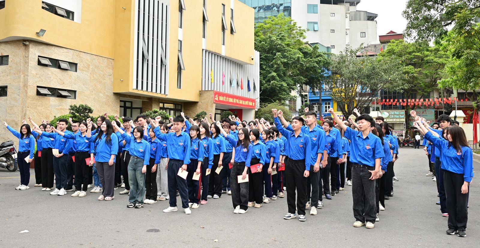 Buổi lễ diễn ra trong không khí trang nghiêm, xúc động. Trước lá cờ Tổ quốc và cờ Đoàn, các đội viên ưu tú đã tuyên thệ, chính thức trở thành đoàn viên Đoàn TNCS Hồ Chí Minh. Đây không chỉ là một nghi thức thiêng liêng mà còn là dấu mốc quan trọng, đánh dấu bước trưởng thành trong nhận thức, lý tưởng và trách nhiệm của mỗi học sinh đối với bản thân, gia đình và xã hội. Phát biểu tại buổi lễ, đại diện Ban Chấp hành Đoàn phường Ngọc Hà đã chúc mừng các đoàn viên mới, đồng thời nhấn mạnh vai trò tiên phong, gương mẫu của thanh niên trong học tập, rèn luyện và tham gia các hoạt động vì cộng đồng. Các đoàn viên được kỳ vọng sẽ tiếp tục phát huy tinh thần xung kích, sáng tạo, góp phần xây dựng tổ chức Đoàn ngày càng vững mạnh.