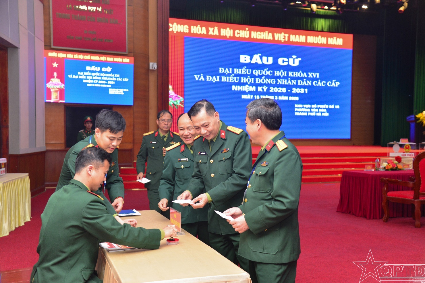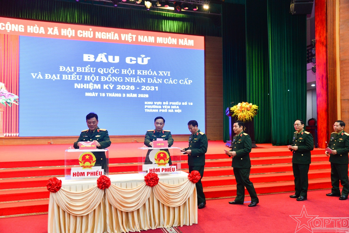 Sáng 15-3, hòa chung không khí ngày hội của toàn dân trên cả nước, cử tri cơ quan Bộ Tư lệnh Thủ đô Hà Nội đã thực hiện quyền công dân, bầu cử đại biểu Quốc hội khóa XVI và đại biểu Hội đồng nhân dân (HĐND) các cấp, nhiệm kỳ 2026-2031 tại khu vực bỏ phiếu số 18, phường Yên Hòa, thành phố Hà Nội.