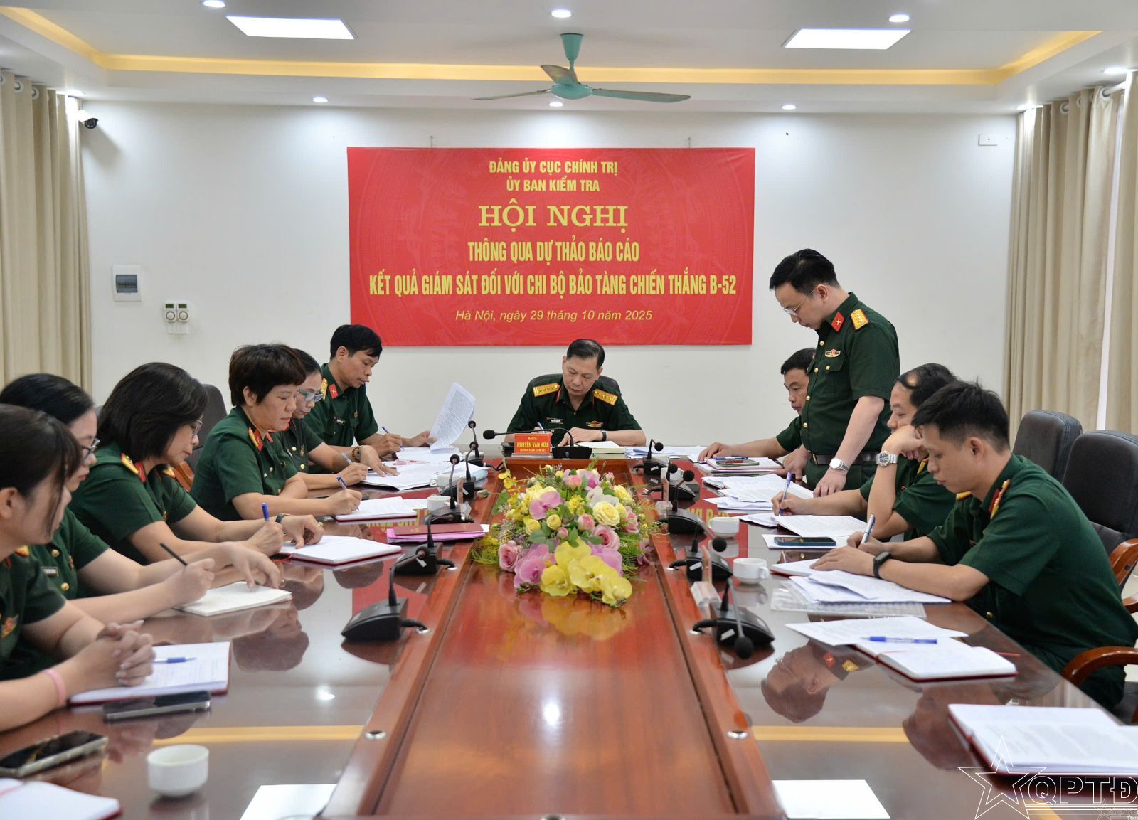 QPTĐ-Sáng 29-10, Đoàn Giám sát của Đảng ủy Cục chính trị, Bộ Tư lệnh Thủ đô Hà Nội do Đại tá Nguyễn Văn Hữu, Bí thư Đảng ủy, Chủ nhiệm Chính trị làm trưởng đoàn, đã tổ chức Hội nghị thông qua dự thảo báo cáo kết quả giám sát đối với Chi bộ Bảo tàng Chiến thắng B-52.